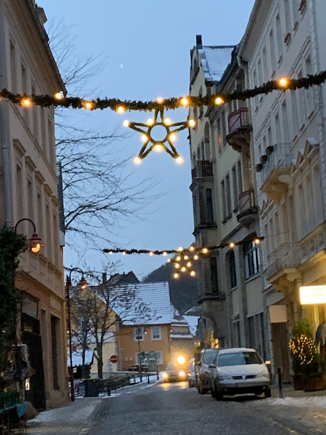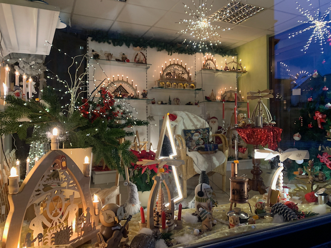 We walked into the town, which reminded me of many small German towns we have lived in, lit up and decorated for Christmas, beautifully, simply, mostly with natural materials. We found an ATM and a halal butcher, a bakery or two still open, small clothing stores and gift stores. It was one of my favorite stops.