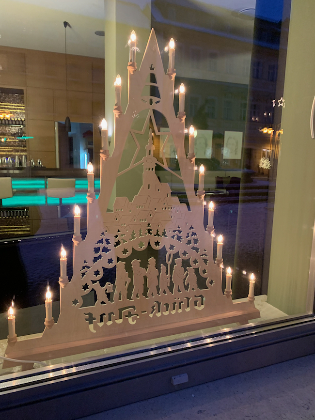 We rested – we had already done 15,000 steps. We wanted to head to another Christmas Market. Confident we now understood the bus system, I asked Google Maps how to get to bus 135, but every bus that arrived with that number said (something in Czech) and DO NOT GET ON THIS BUS so we figured out they were going out of service. After waiting over an hour for one in service, we were really cold so we came back and ate a thoroughly mediocre expensive meal at the Hilton. Another day with over 17,000 steps – it has become routine on this trip 😁.