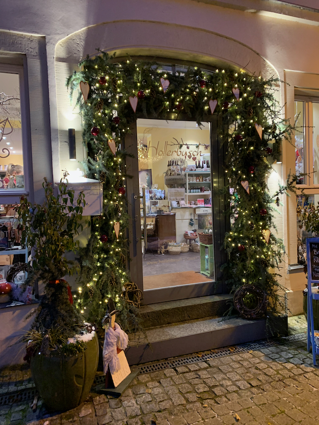 We walked into the town, which reminded me of many small German towns we have lived in, lit up and decorated for Christmas, beautifully, simply, mostly with natural materials. We found an ATM and a halal butcher, a bakery or two still open, small clothing stores and gift stores. It was one of my favorite stops.