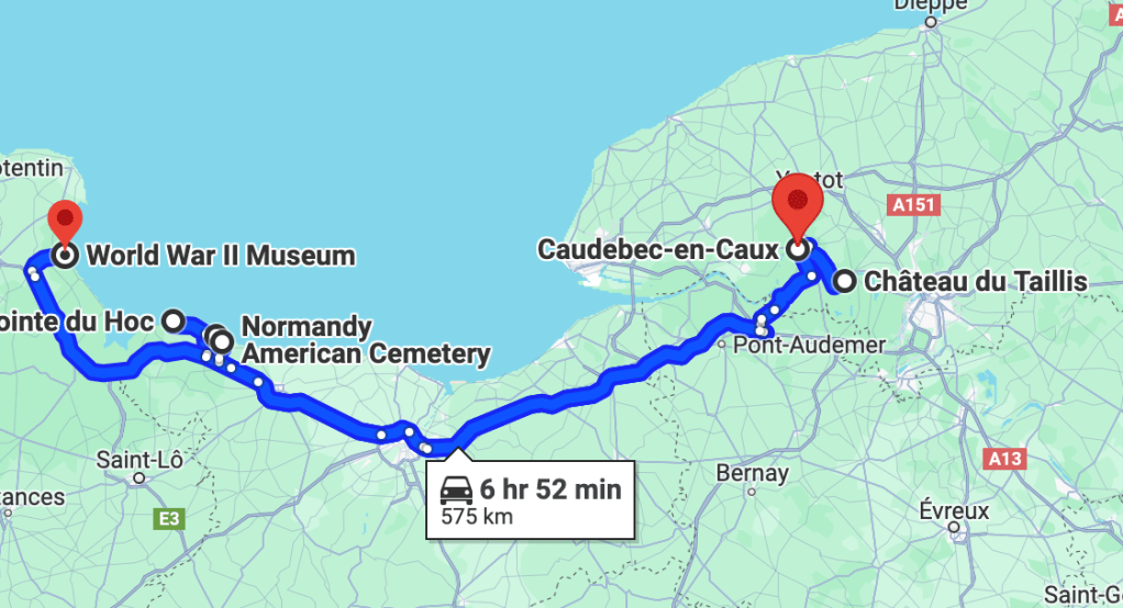 You can see the Seine twist and turn as it flows from Paris to Vernon (and Giverny) and to Chateau Gaillard.