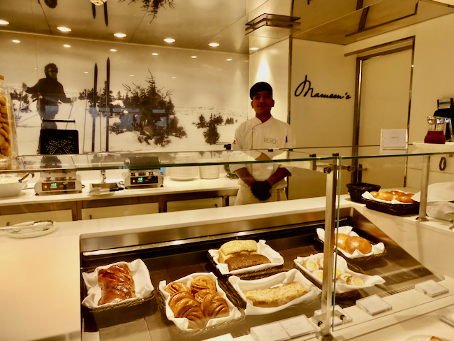 Quiet dinner in the World Cafe, many fellow guests dining in the specialty restaurants and more formal restaurant, which is slow and the tables are too close together for our comfort. We found a quiet table in the bar and had a great conversation with a new couple who told us Viking had gone public (somehow we had missed that). They had not missed it; they had stock.