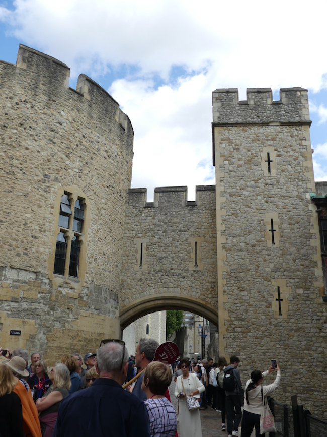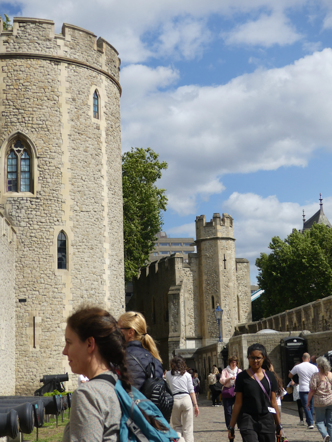 We are so glad it worked out this way. During the ride back into London, the skies suddenly cleared, we had blue skies, the crowds at the Tower were less than two days ago when we had lunch there, and we had a superb Blue Badge tour guide who really knew his history, and even better, knew how to make it interesting. We had time on our own – most went to see the jewels. Iβd seen them other trips, I wanted to see the White Tower, which I climbed all the way to the top. I loved the interior spaces. Built in 1070 by William the Conqueror, it had an unexpected graciousness even though its purpose was defensive. AdventureMan spent his equally happy time in the Fusiliers Museum, and we met up with happy hearts for a time well spent in areas we love. It was a very long day. We got back late, and happy.Β As it turned out, people were not so angry with us, we all got along, and we made friends with the guide, who really was terrific.