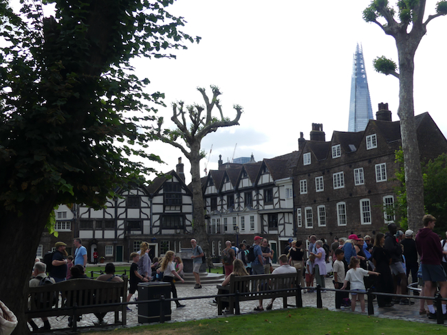 A Viking tours person was at the gate as we came it. βHave the tour buses for the Tower of London left?β we asked, and she said yes, the last just left. We headed to the boat, but were interrupted by another Viking tour person, standing by a bus who asked if we were the people supposed to be on the London Tower Tour, and we said yes, we were – and asked if this was the bus? She said yes, we told her we didnβt have our tickets and she said it was all right, Viking would manage it. A miracle! We were last on the bus and sat in the way back, happy just to be on board.