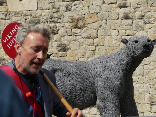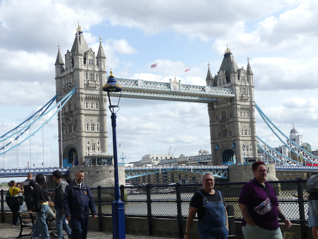 A Viking tours person was at the gate as we came it. βHave the tour buses for the Tower of London left?β we asked, and she said yes, the last just left. We headed to the boat, but were interrupted by another Viking tour person, standing by a bus who asked if we were the people supposed to be on the London Tower Tour, and we said yes, we were – and asked if this was the bus? She said yes, we told her we didnβt have our tickets and she said it was all right, Viking would manage it. A miracle! We were last on the bus and sat in the way back, happy just to be on board.