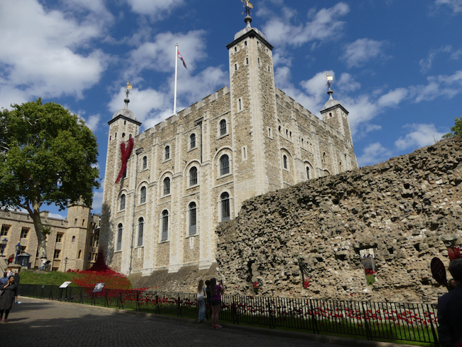 We are so glad it worked out this way. During the ride back into London, the skies suddenly cleared, we had blue skies, the crowds at the Tower were less than two days ago when we had lunch there, and we had a superb Blue Badge tour guide who really knew his history, and even better, knew how to make it interesting. We had time on our own – most went to see the jewels. Iβd seen them other trips, I wanted to see the White Tower, which I climbed all the way to the top. I loved the interior spaces. Built in 1070 by William the Conqueror, it had an unexpected graciousness even though its purpose was defensive. AdventureMan spent his equally happy time in the Fusiliers Museum, and we met up with happy hearts for a time well spent in areas we love. It was a very long day. We got back late, and happy.Β As it turned out, people were not so angry with us, we all got along, and we made friends with the guide, who really was terrific.
