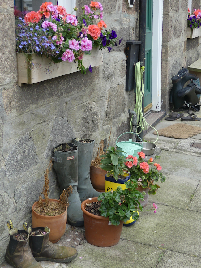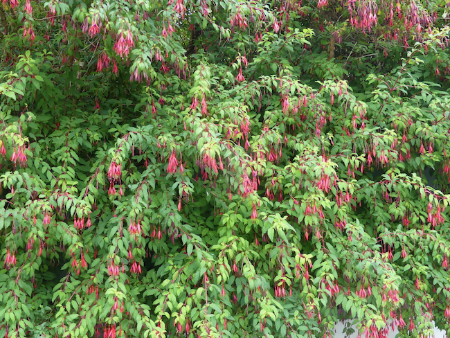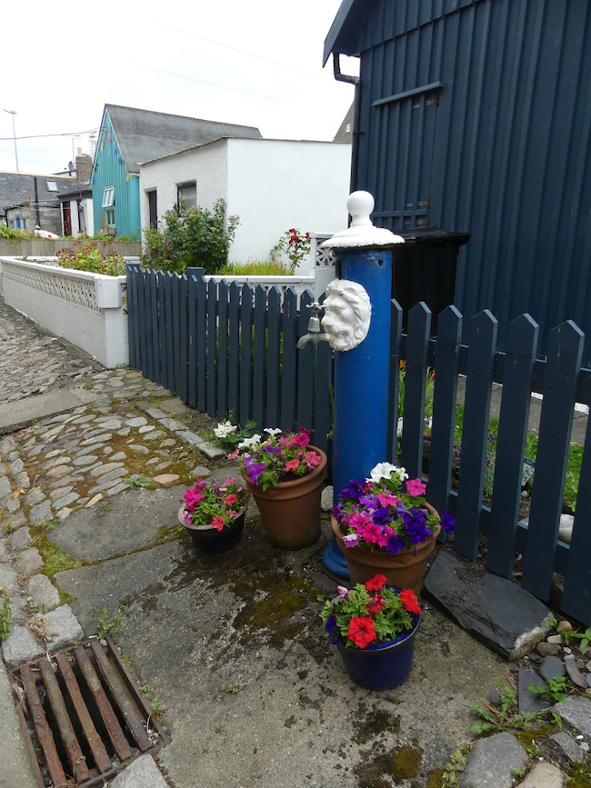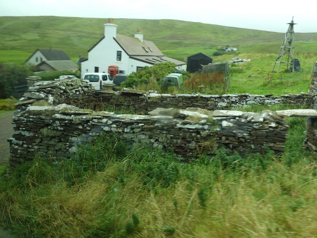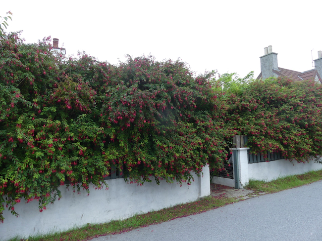 In this village I see something that blows my mind, an entire hedge which is a fuchsia shrub. Fuchsias are special to me; I used to buy one for my Mother for Mother’s Day. I have tried to keep hanging fuchsia’s almost everywhere we have lived, but they are very particular – don’t like heat at all, and need just the right amount of water. The guide tells me this is a hardy fuchsia, and they are grown all over the Shetlands because they love it there. What luxury!