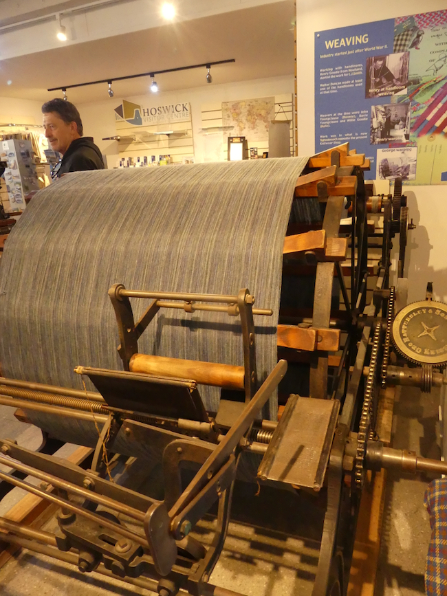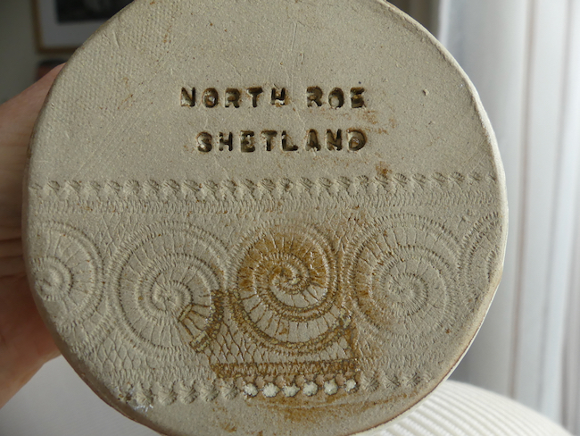 En route, we pass gorgeous bays, fields full of fat, happy sheep, contented cows and frisky Shetland ponies. We stop for a break in Hoswick where I find a gorgeous handmade coffee cup, and love the old crafts demonstrations set up there. It was still very early – barely 8:30, so they had gone to some trouble to be open when we passed through.