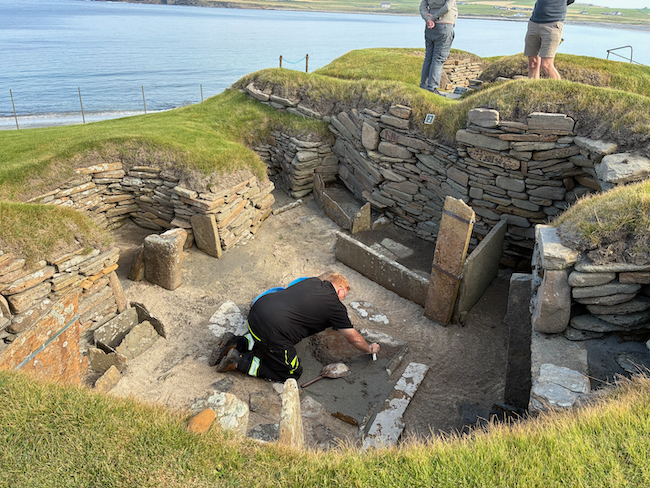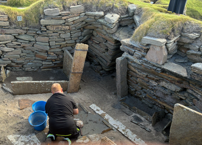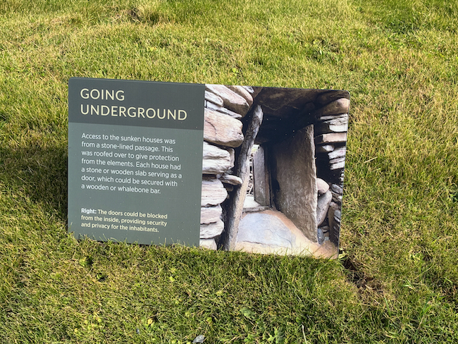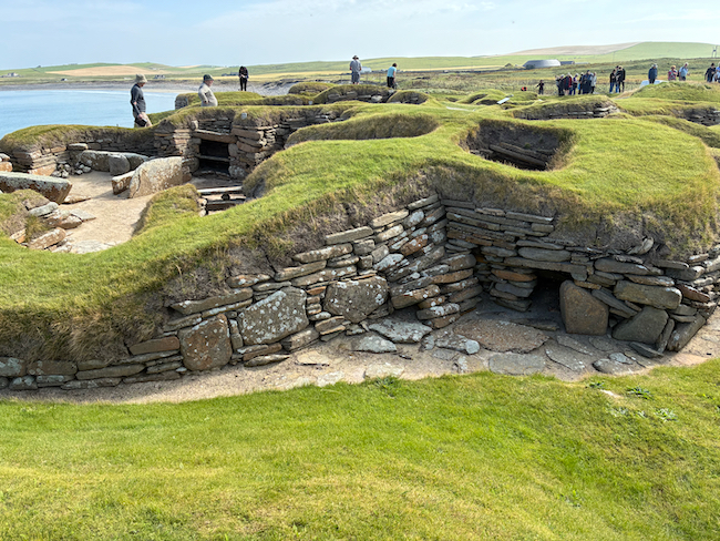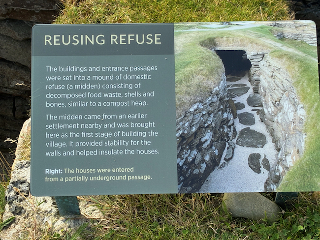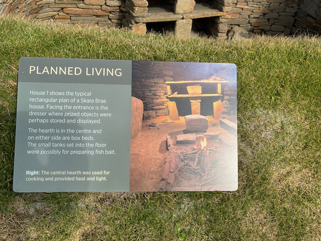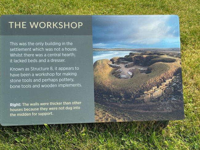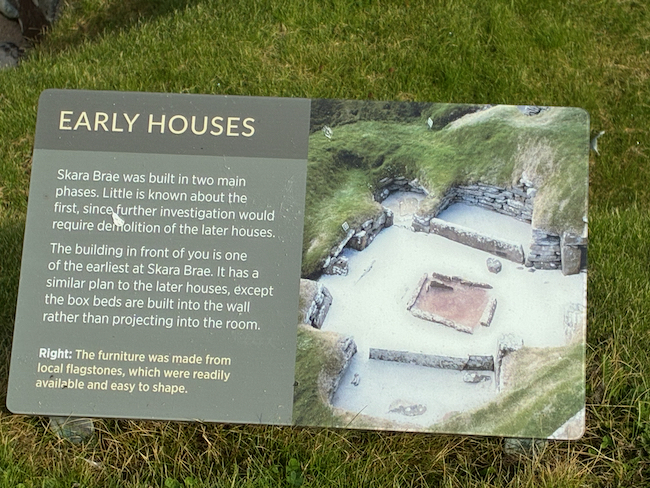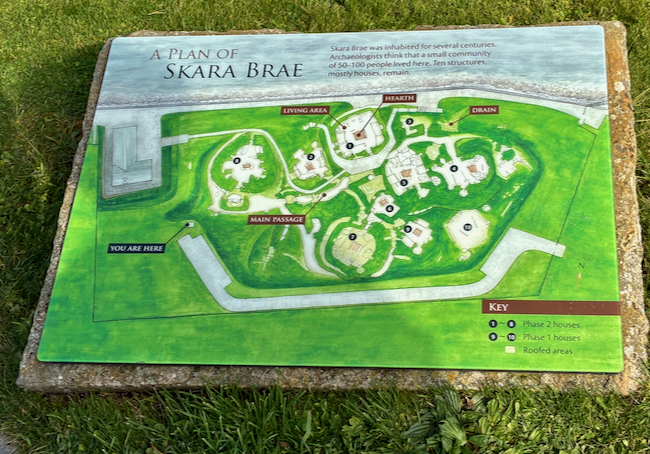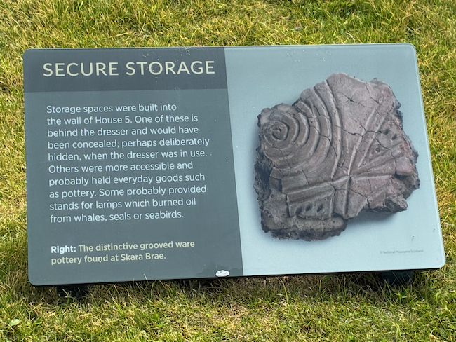 ”Graham Watt, the 7th Laird of Breckness, who unearthed the world famous neolithic of Skara Brae in 1850 put in a seawall to forestall further erosion and archaeological experts have excavated several of the houses, although more exist still underground.” (I believe this quote came from a Scara Brae booklet, but I am not sure. 🤔)