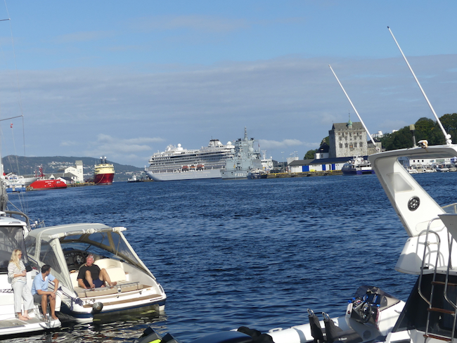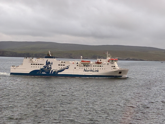 On our way this morning, this cracked me up. The local ferry, the North Link, with a big Viking on it passes the huge Viking ship as if we were barely moving, LOL. I guess it just struck me as funny. Maybe he’s pointing the way, thinking we are lost.