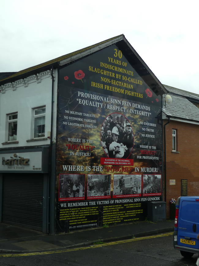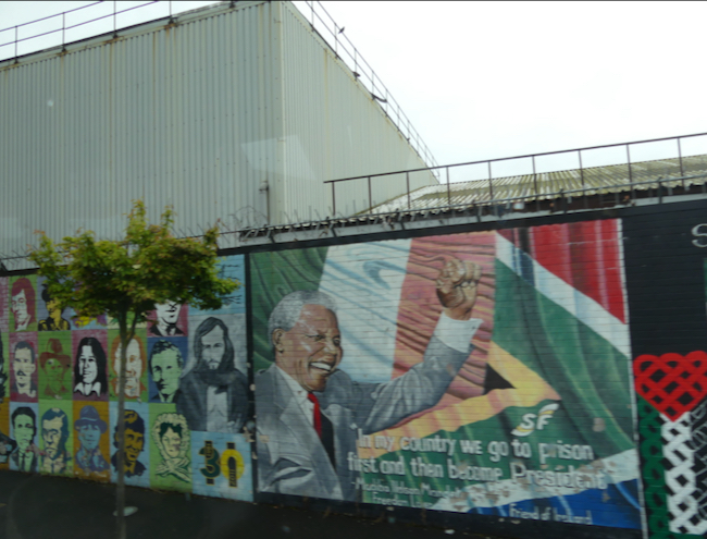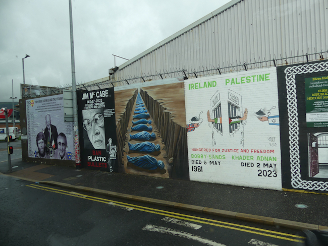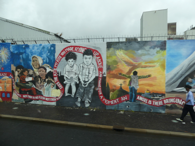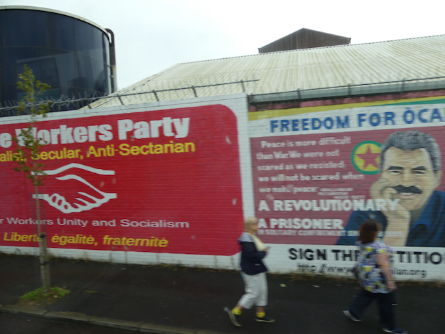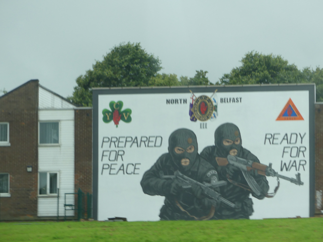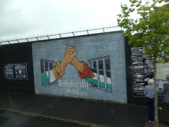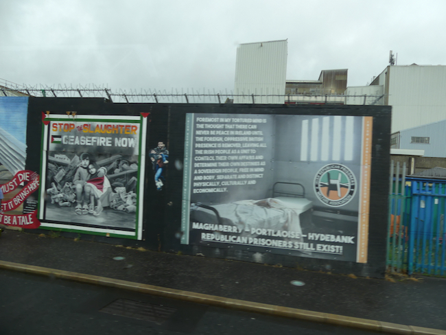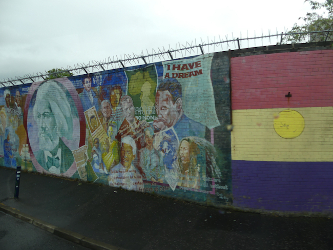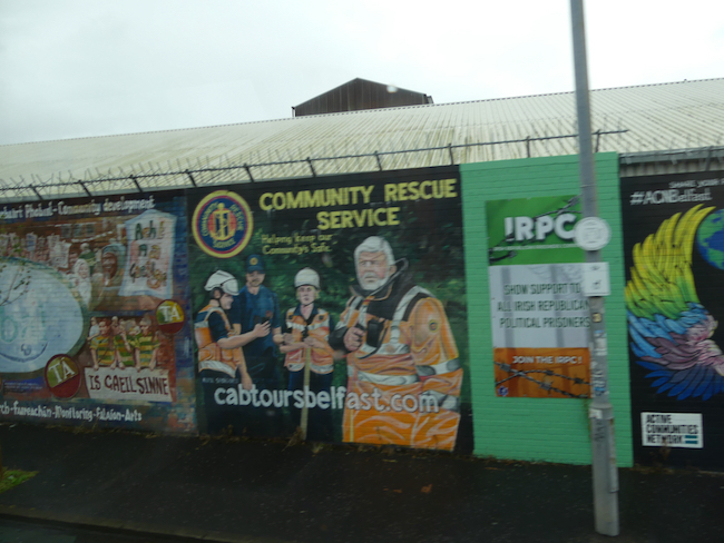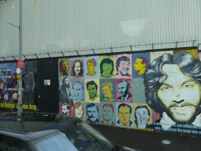 Our guide is Sean, and he is full of jokes, but also full of history, some old history, but most of it about the “troubles” and how the peace is working out. As it turns out, peace is very difficult. People have trouble learning to trust one another after all the years of shooting at one another, but groups are finding ways to work together on projects, and rubbing shoulders with one another helps reduce fears and prejudices, and helps contain small problems from becoming big problems.
