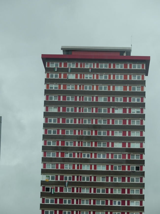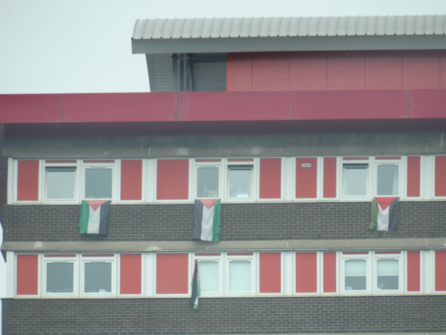 Sean tells us that most of the flags and nationalist art is created by the working class, who are still living with some resentment of the ruling, more liberal class in power. Most building flying Palestinian flags are those of the soldiers and those protesting the status quo.