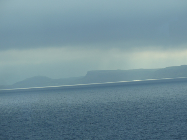Leaving Shetland – even the skies and seas are the Shetland colors of my scarf!