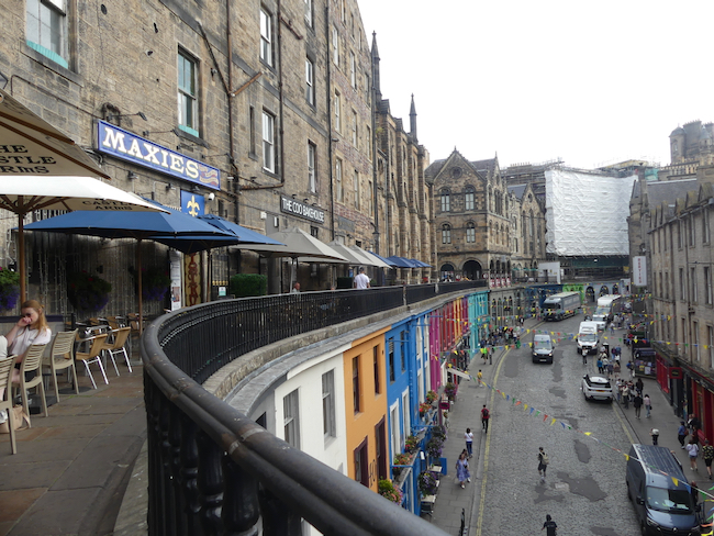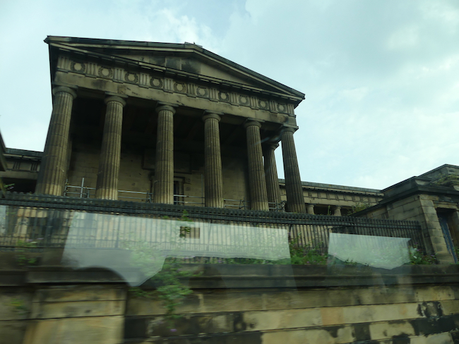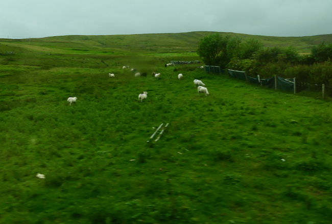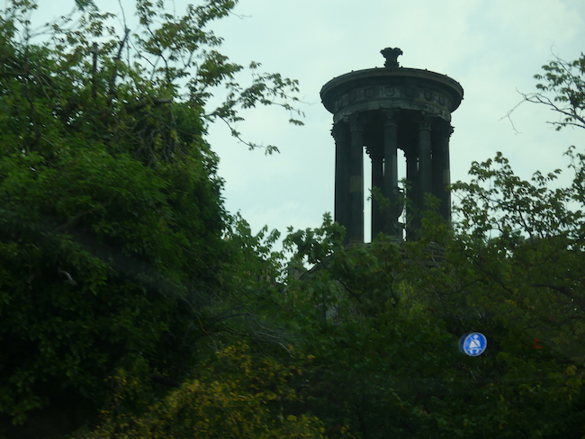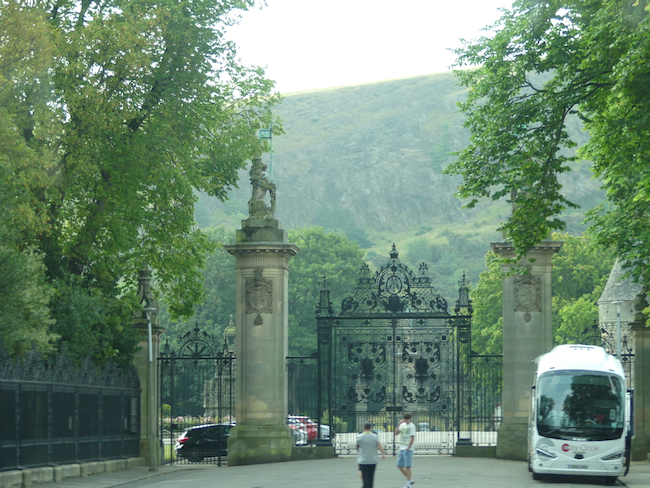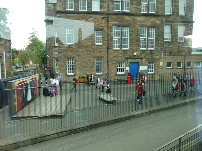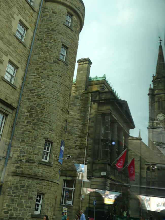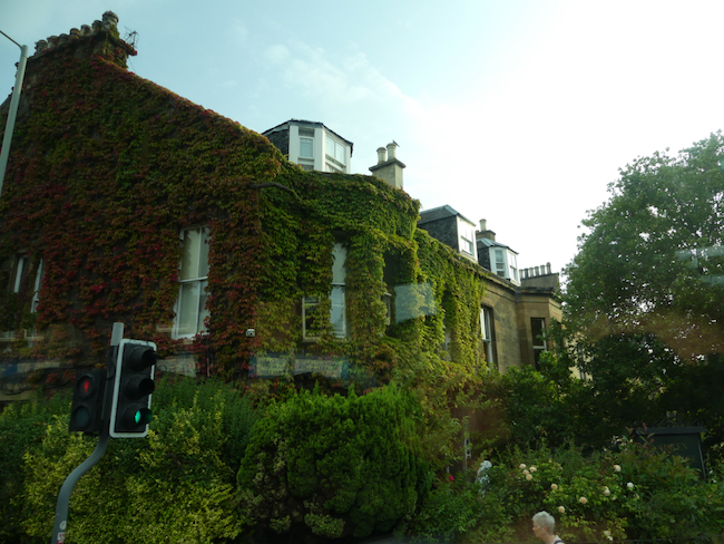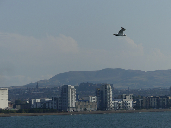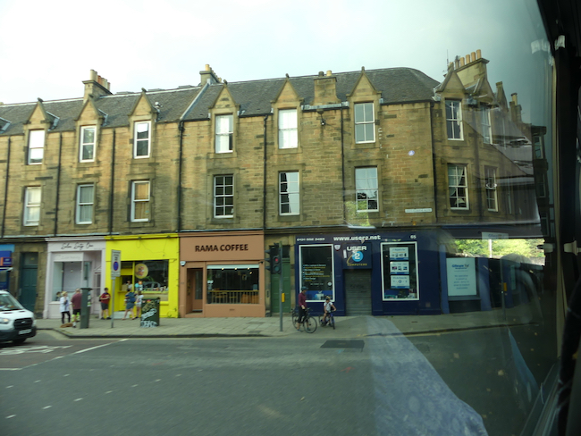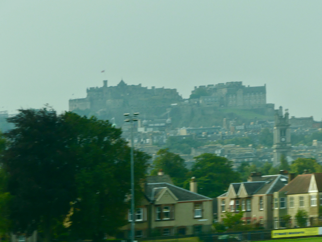 We see the name Lothian on buses and small stores. AdventureMan tells me Lothian is the name of the lowland region that includes Edinburgh, lying between the southern shore of the Firth of Forth and the Lammermuir Hills and the Moorfoot Hills. So you take the high road and I’ll take the low road . . . . Firth is a cognate of fjord, a Norse word meaning a narrow inlet. Thank you, AdventureMan. Now we are leaving Edinburgh.