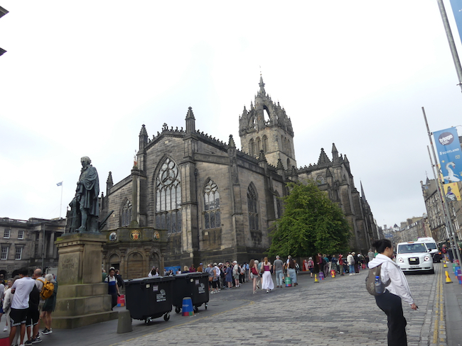 The tour shows us all kinds of buildings – housing for rich and poor, schools, different architectural styles, different kinds of stone and decorations, statues of important men and homes of some of Edinburgh’s famous men. Edinburgh, and Saint Patrick’s Cathedral in Dublin, give of thick Game of Thrones vibes to me. We park and hike up the hill to the castle, and the King’s Mile, where we are on our own for an hour and the crowds begin arriving.