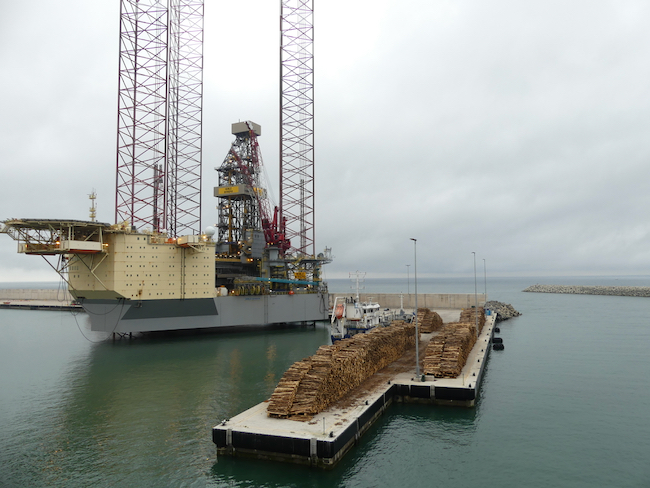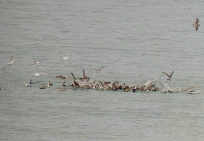 We’ve finished dinner, but we haven’t finished chatting, and there is a big block of something (?) floating off starboard side and people start rushing over to take a picture of the “iceberg.”