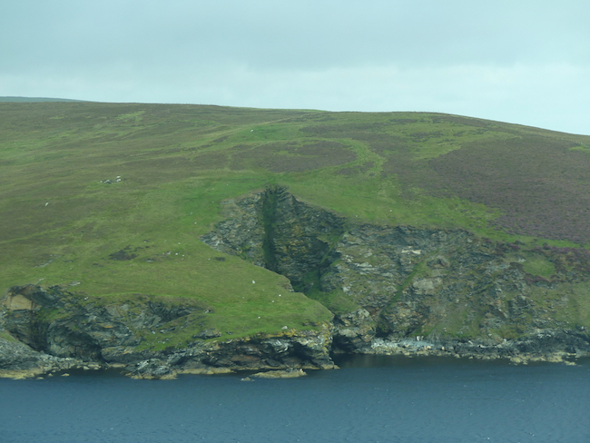 We see a tall ship out in the adjoining bay. Our guide is smart, and a good story-teller. She tells us not much really grown in the Shetlands to support life; the trees are mostly gone, some grow potatoes and vegetables in family plots, but the main industry, until the oil fields came, has been fishing, particularly herring. There are herring stations near where our boat is docked, and she tells us there were women called the “gutting girls” who would flay and salt the herring and put them in barrels to ship around the world.