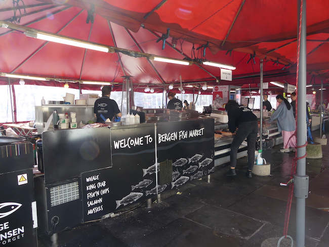 The trip is ending, and we are not ready. We decide to forego packing and head into Bergen (we are docked in the city) to explore a little before lunch. It is a bright sunny day, and a warm day in Bergen. It is still early, so not yet crowded as we walk into the downtown area to explore the fish market and surrounds, and take some documentary photos.
