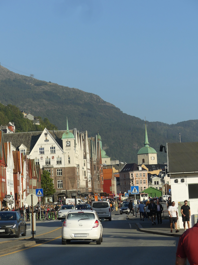 Meeting up with our friends for dinner, we work some on the problems of the world, and then on our more immediate problems – family, travel plans, things we have to deal with in the real world. It’s still light outside after our long (also light) dinner, so AdventureMan and I take a last walk into downtown Bergen and back to settle ourselves. We actually sleep well.