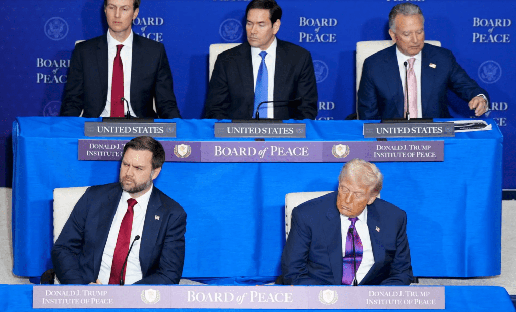 The man who mercilessly called Joe Biden “Sleepy Joe” dozes through his own “Peace” meeting. Pony up a billion dollars and anyone can join. Maybe his son-in-law gets in for free.