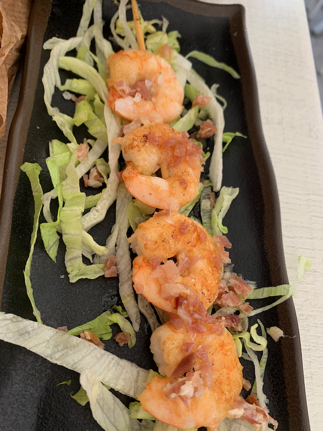 A brochette of grilled shrimp – fresh, delicious.