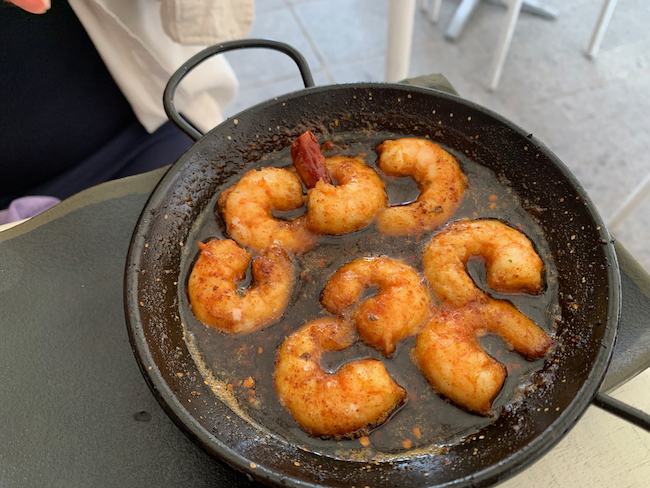 We’ve been hiking around Cadiz all morning, and we are ready to have lunch. We look and look for the right place – not too grand, not too stuffy, but with good local food. Finally, sigh, we settle for a place that is also full of Spanish tourists, so a tourist place, but Spanish tourists.