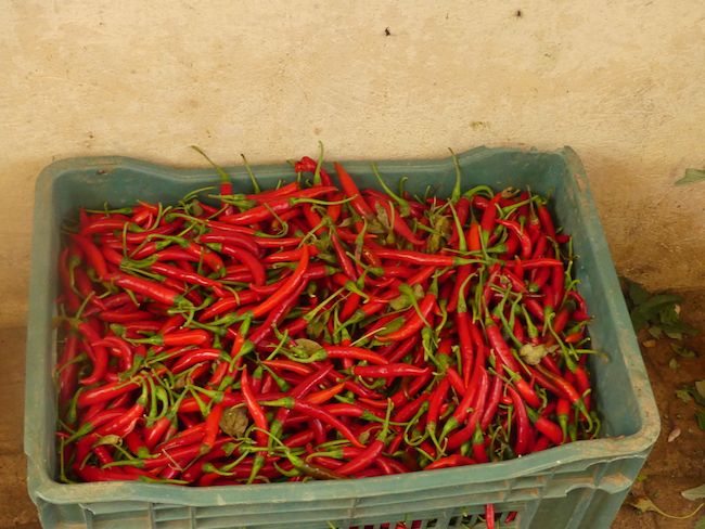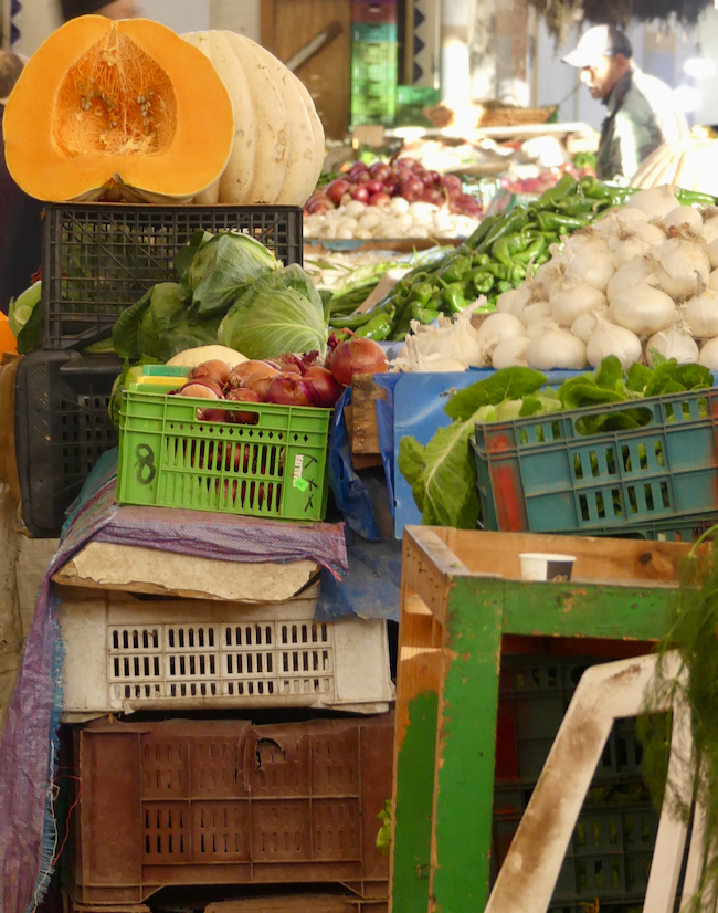 After we eat, we head up the street, only to discover our next blessing which is also a little disappointing, but oh well, it is what it is. Around the corner, if we had just gone a little bit further is the open market! It is colorful, and full of fresh beautiful vegetables, meats and seafood. AdventureMan needs to try some local sherry.