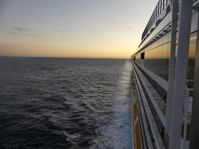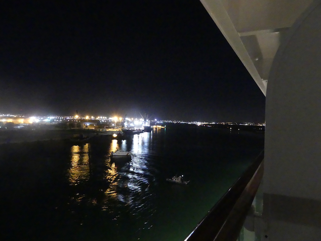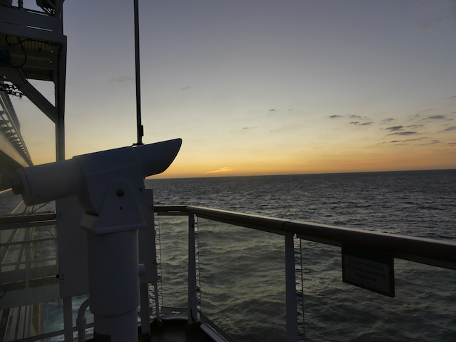 Too early for sunrise, not yet in Cadiz, and not allowed out on the deck – maybe high winds?