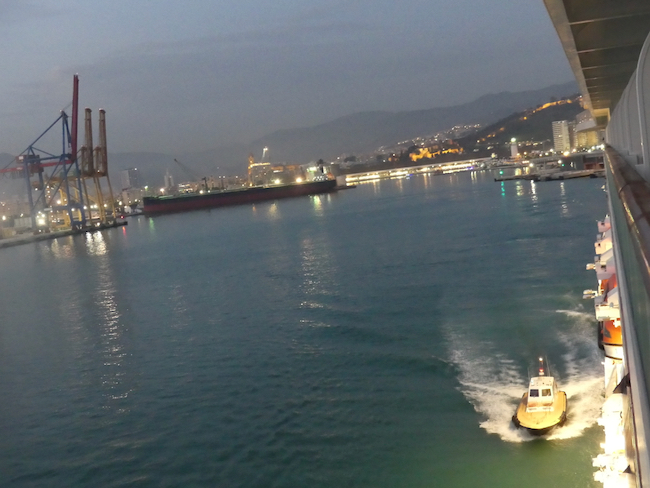 Ah well. Small drama. We put on our swimsuits and head for the spa. As we soak in the waves and bubbles for the last time, we review the trip and think how lucky we are. We never had any serious rain, only maybe ten minutes in Malta. No big deal. And all the ports gave us what we needed – new sights, new experiences, new understanding of how the world works. We love our cabin, our stewards have treated us like royalty, and we’ve met some interesting people and some nice people. This has been a really good trip for us.