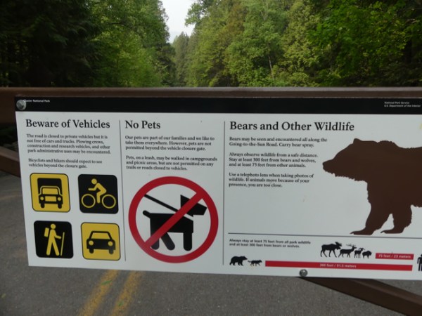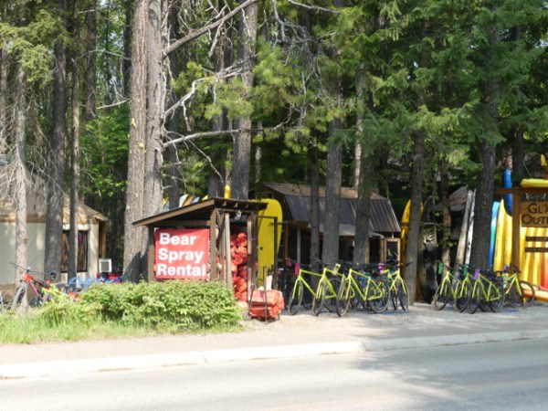 In Glacier National Park, even more than in Yellowstone, there are warnings about bear everywhere, and there are all kinds of kiosks selling bear repellent.