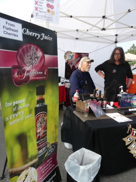 We spent quite a bit of time at this booth because having come through the Lake Flathead Orchard area, I have a yearning for cherries. I look for them everywhere. It is not the season, but I am wishing for some cherries. These people are growing cherries, and bottling cherry juice, which we bought. It was wonderful. We drank it like wine, and it reminded us of wine, and we also thought it would be good with champagne, like a Kir Royale, or a Samburu Sunset.