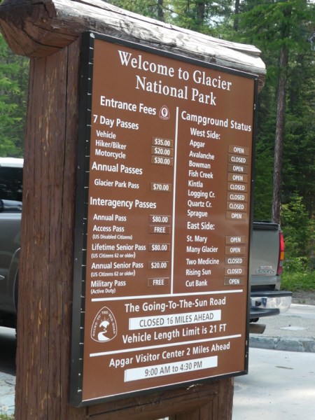 Glacier National Park is just minutes away; we are there by ten in the morning. I am posting this sign because we were constantly in and out of the park, a luxury we can afford thanks to our Senior Passes to all the National Parks which we bought when we turned 62 for $10 (or maybe $20, I can’t remember.). They are now $80, and if you love the national parks the way we do, and like the freedom of being able to travel freely in and out, these passes are worth every penny.