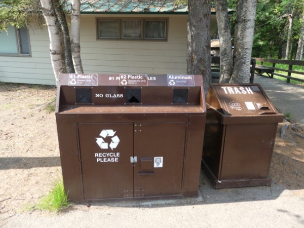 These are the recycle and bear-proof trash bins. Both are taken very seriously.