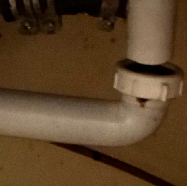 There is a gap in the drain pipe to our right side sink. AdventureMan is in the process of making his famous beans, and when he ran the water, it started gusing out the gap. He tried to twist the connector-thingy but it did not grab.