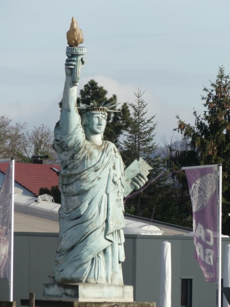 You do remember that the French designed and gifted us with our beautiful Statue of Liberty? I believe the sculptor came from Colmar, anyway, this Statue of Liberty parody stood in front of a motorcycle shop we could see from the ship. It was a great walk, maybe a mile round trip, to get a good shot of it, because there were gates and walls we could’t get past on the docks to get there directly, so we had to walk around.