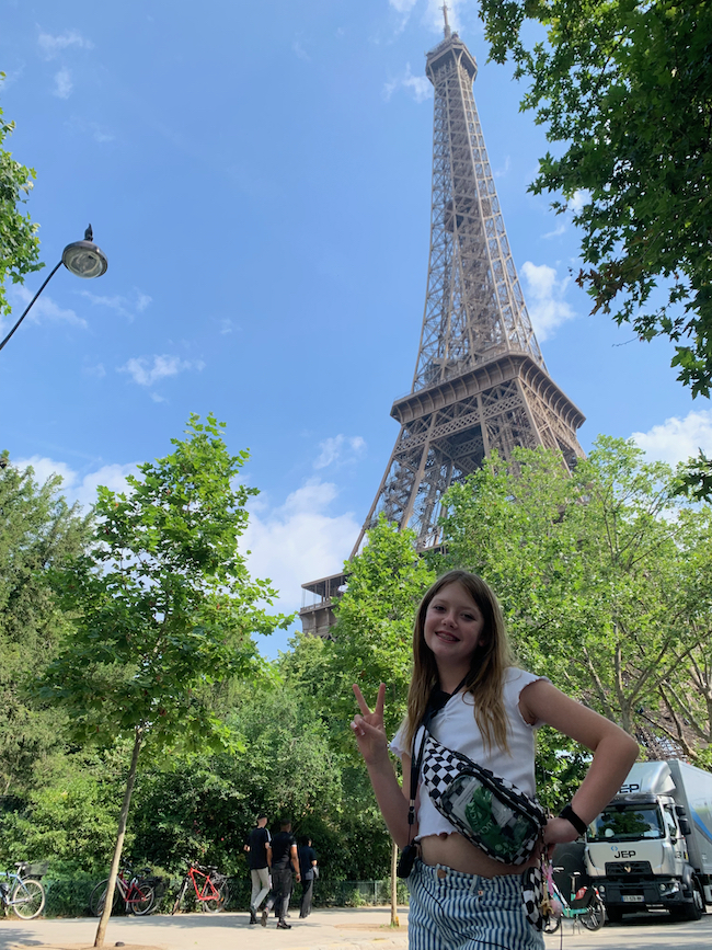 Sunrise over the Seine, and yes, that is the Eifel Tower and it is another glorious (and hot) day. We are still jet lagging, which means getting up early is easy.