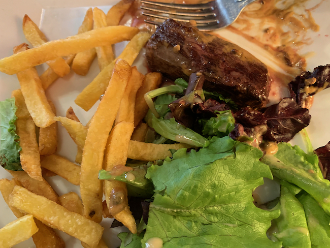 Harder than we thought. We pop into a couple grocery stores, where they have everything, everything except hair brushes. We head into the side streets, where I find a hair salon and go in to buy a hairbrush. This turned into a real comedy. They couldn’t understand me, so I spoke French, and they got the brush part they were very concerned. I finally figured out they had no appointments for me, they thought I wanted my hair brushed. I kept trying to explain. AdventureMan left to see if he could find anything, but came back and we were still trying to figure it out. Finally, they understood I wanted to buy a brush, but they didn’t have any for sale. They were so kind, and by the time we finished, the entire shop was engaged in trying to help me.