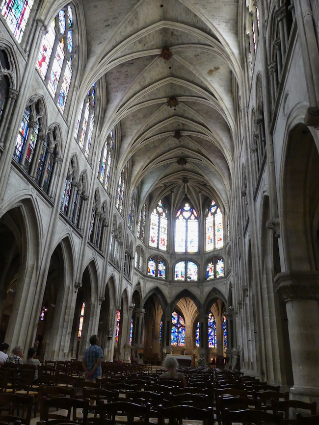 Across the street was a very beautiful small church, Sainte Severin. As we stood outside looking at it, the waiter ran after us carrying my husband’s “go bag” with our maps and water jugs. He was so kind and went to a lot of trouble to catch us.