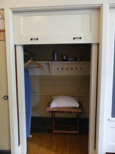 The closet in our room is the former cloakroom, just like the very old school I went to school in, with hooks in place for students to hang their coats: