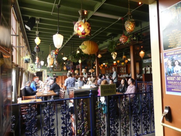 It hits a lot of blocks for me – high ceilings, huge windows, wooden floors, all this and a sense of history and a gathering place for the community. Nearby is a growing arts and crafts street, gentrifying, with lots of really good restaurants. This is a really cool place for us. AdventureMan loves the history of the place, the glory of the vibrant plantings in the gardens, free parking and nearness to culture, food and convenience (drug store, very trendy grocery store, etc.) We like the Portland vibe.
