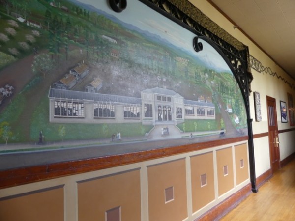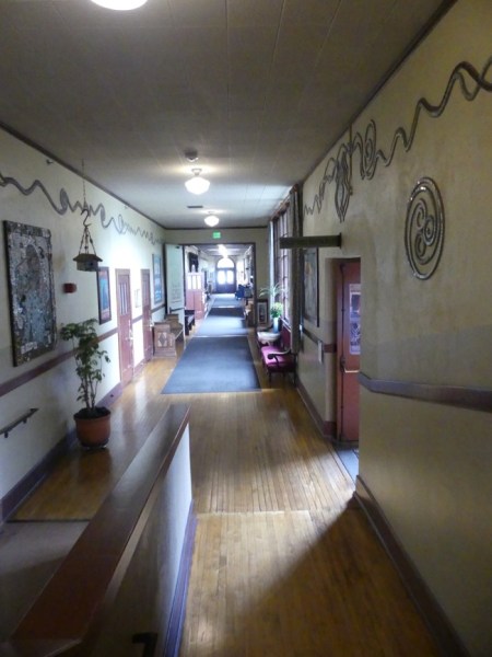 McMenamins is a trendy Oregon brewery that has done some really smart things – put good food into their breweries, and bought up old, decaying buildings, restored, renovated and turned them into hotels with charm and character. The one we are staying at is an old elementary school, and much of it is still in place – the wide hallways, the fabulous wooden floors, the signs for restrooms, gymnasium, etc. and classrooms which have been turned into guest suites.
