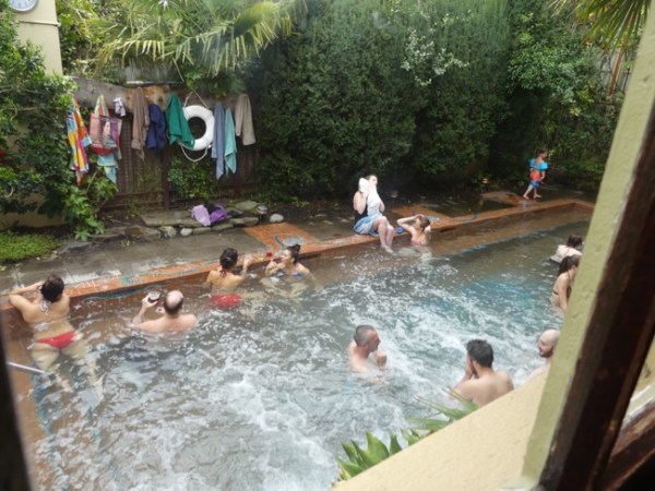 One of the things we love is that the neighborhood and community gather here. There is a movie theater that plays current films; guests at the hotel get free admission, but other people are here, too. There is a soaking pool outside near the old gymnasium, and local mothers had their children in the pool, warm enough to be teaching them to swim on a cool rainy day in Portland.