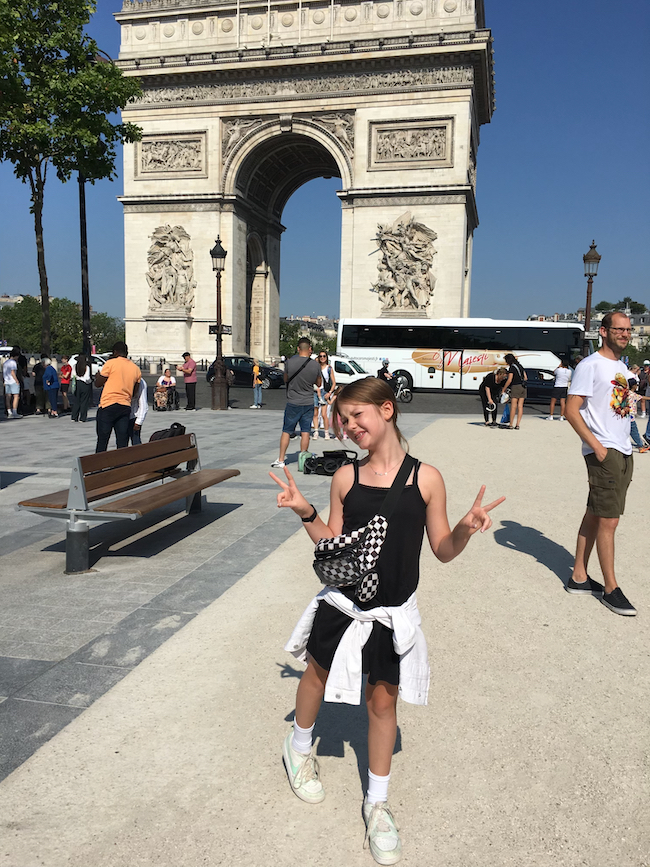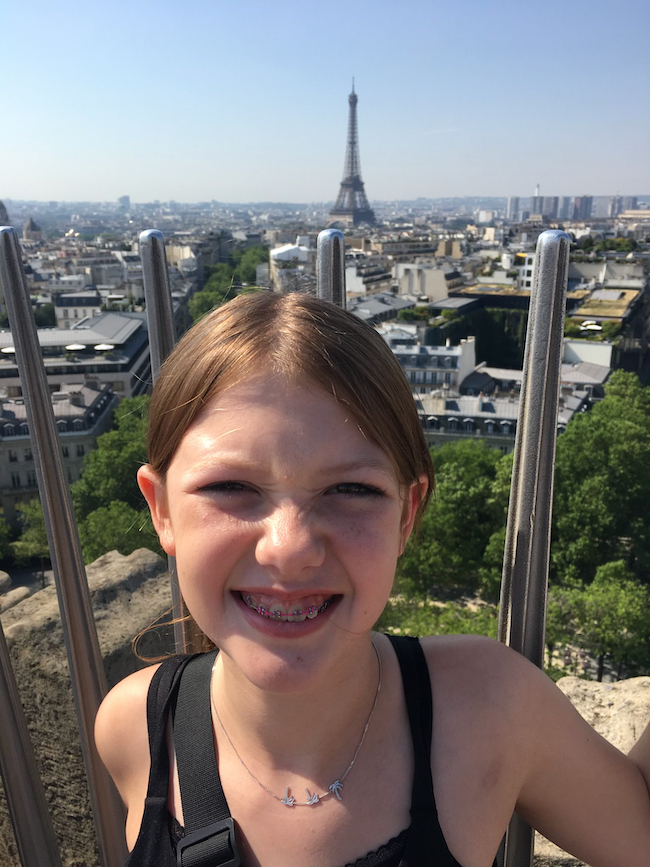 After breakfast, AdventureMan takes Q and N on a great adventure, climbing to the top of the Arch of Triumph.