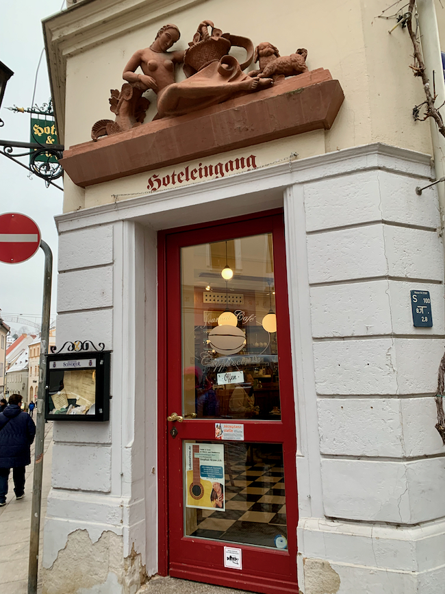We slowly wound our way down the hill via the streets, and the steps, ending up back in the old market. Nearby, we found a cafe where we ordered the hot chocolate (it comes with lots of whipped cream) and apfelstrudel.