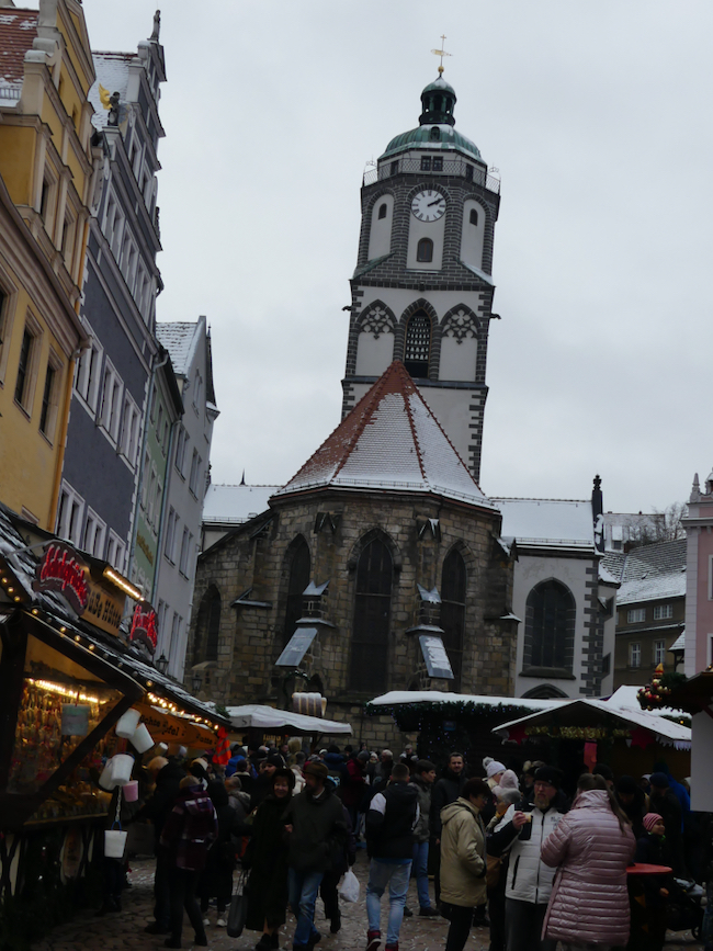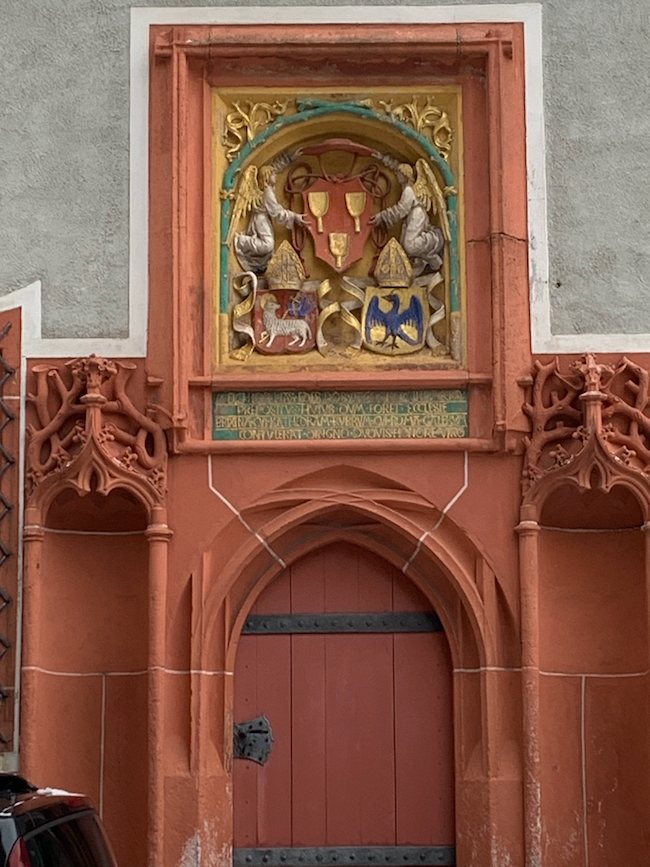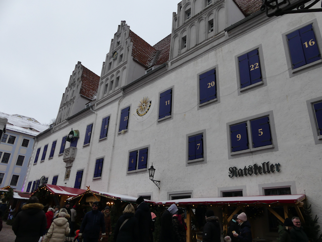 The town hall has numbered its windows like an Advent Calender, and they open to a different display with each day. We walked around the market – and then headed up to the cathedral on the top of the hill, a hike of several hundred steps uphill, with a few level areas where we could catch our breath as much younger hikers breezed past us. It’s humbling.