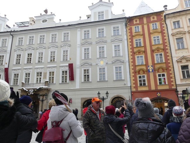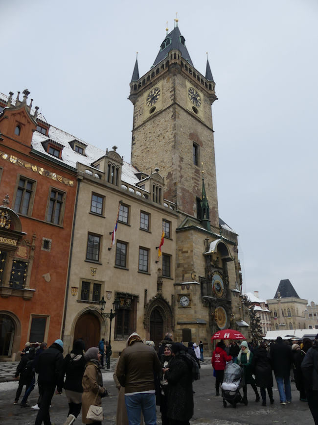 We walked, crossed a small portion of the bridge with lots of tourists, walked a little around Old Prague – not going inside, and then, just around when the Astrological clock would be striking, then the guide took us down in the basement of the Bethlehem church for some kind of exhibition – we were free to use the restrooms and warm up, but we had hardly been out long enough to get cold. As we left the church, we told the guide we would leave and make our way back to the hotel on our own.