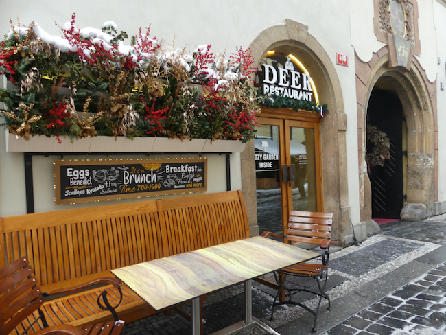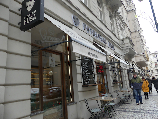 I chose a smaller pair, and she still gave me a better price, so I was very happy. As we completed the deal, we asked her for the name of a good Czech restaurant, a place she might eat with friends, not fancy but with a good atmosphere, and she sent us just up the street and around the corner to Potrafena Husa, in a less traveled part of town.
