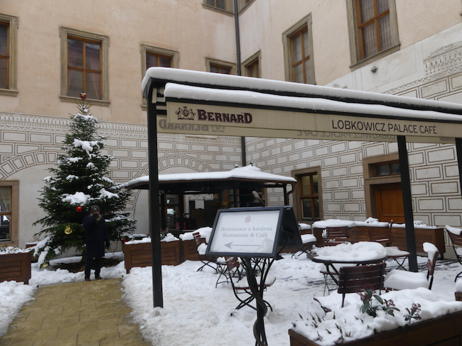 We hurried through the castle, and headed down the hill back to the city, stopping only at The Best Christmas Shop in Prague (and I believe it!) and the Lobkowitz Palace, where we had hot drinks – hot chocolate with whipped cream, a hot ginger lemonade, fabulous and not too sweet. We split a half-sweet chocolate cake and delighted in the surroundings – lots of families with bundled-up children, and lots of people from other places.
