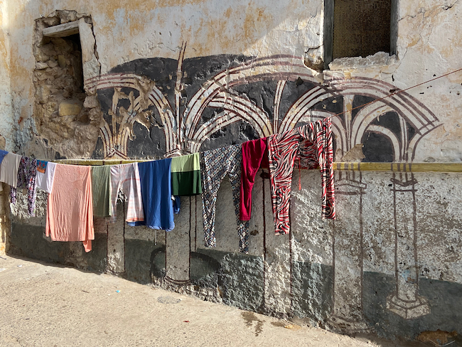 My husband took this photo below; he loved the contrast of the drawing of the cisterns and the laundry hung to dry over the cisterns.