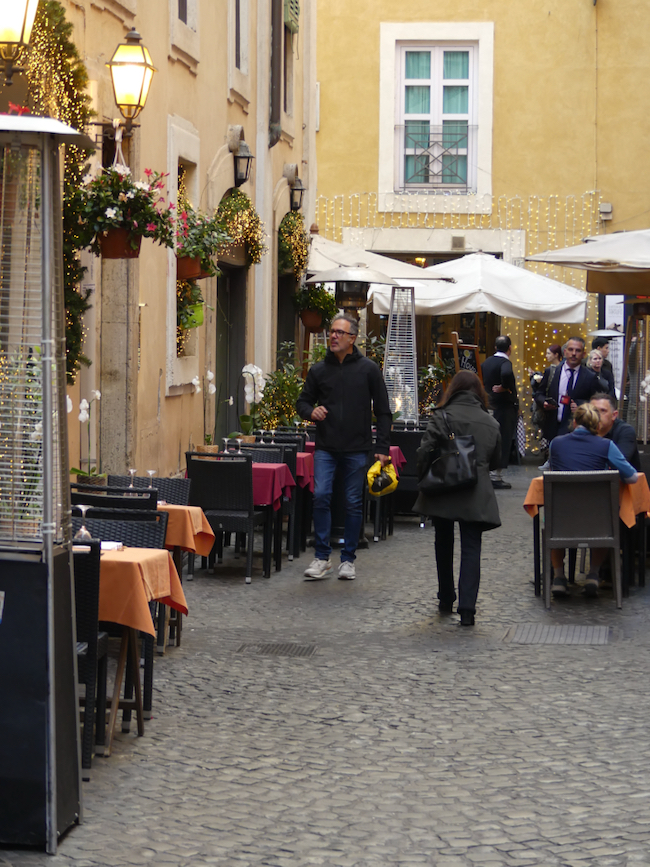 We have several things we want to see – AdventureMan has found the Pantheon on our map, and the place our guide recommended for a lunch were the Romans might eat, and the Trevi fountain, and between the Coliseum and Plaza de Popolo we can see those, and whatever else we see. We just want to soak in a little flavor of Rome, and we can do that by walking, and hitting some of the back streets and lesser-known sights.