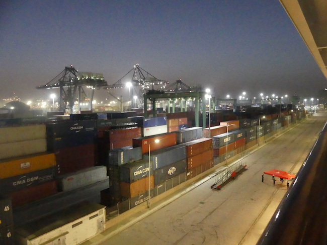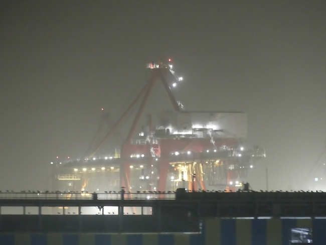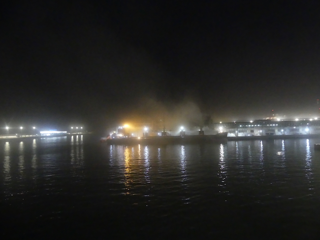 As we sail away from Casablanca, that same ship continues to be surrounded with that yellow steamy cloud.